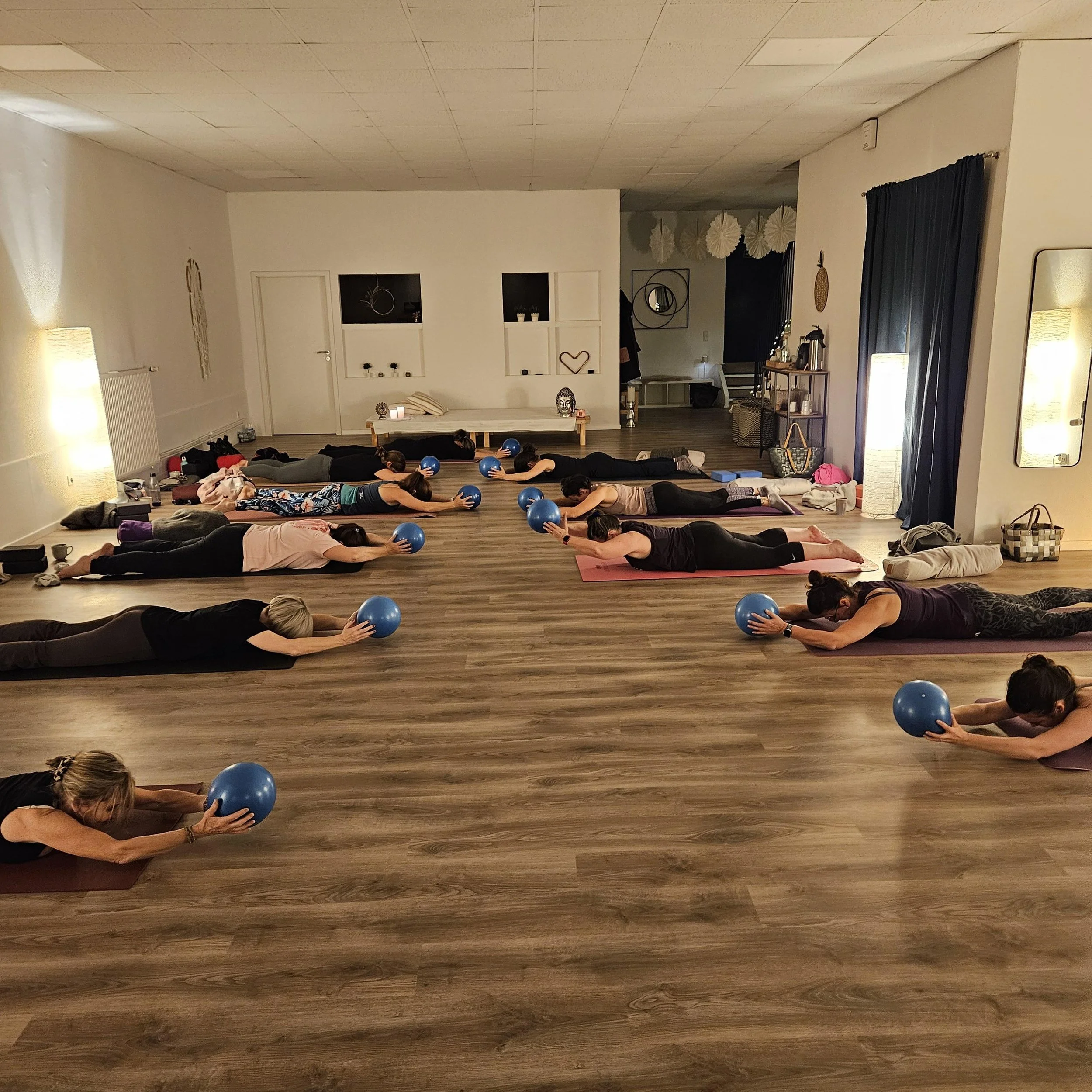 Luftig und offen, lädt Dich mein Raum ein, in der Bewegung zu fließen und bietet Dir genug Platz um die Dynamik in den Stunden zu erfahren.